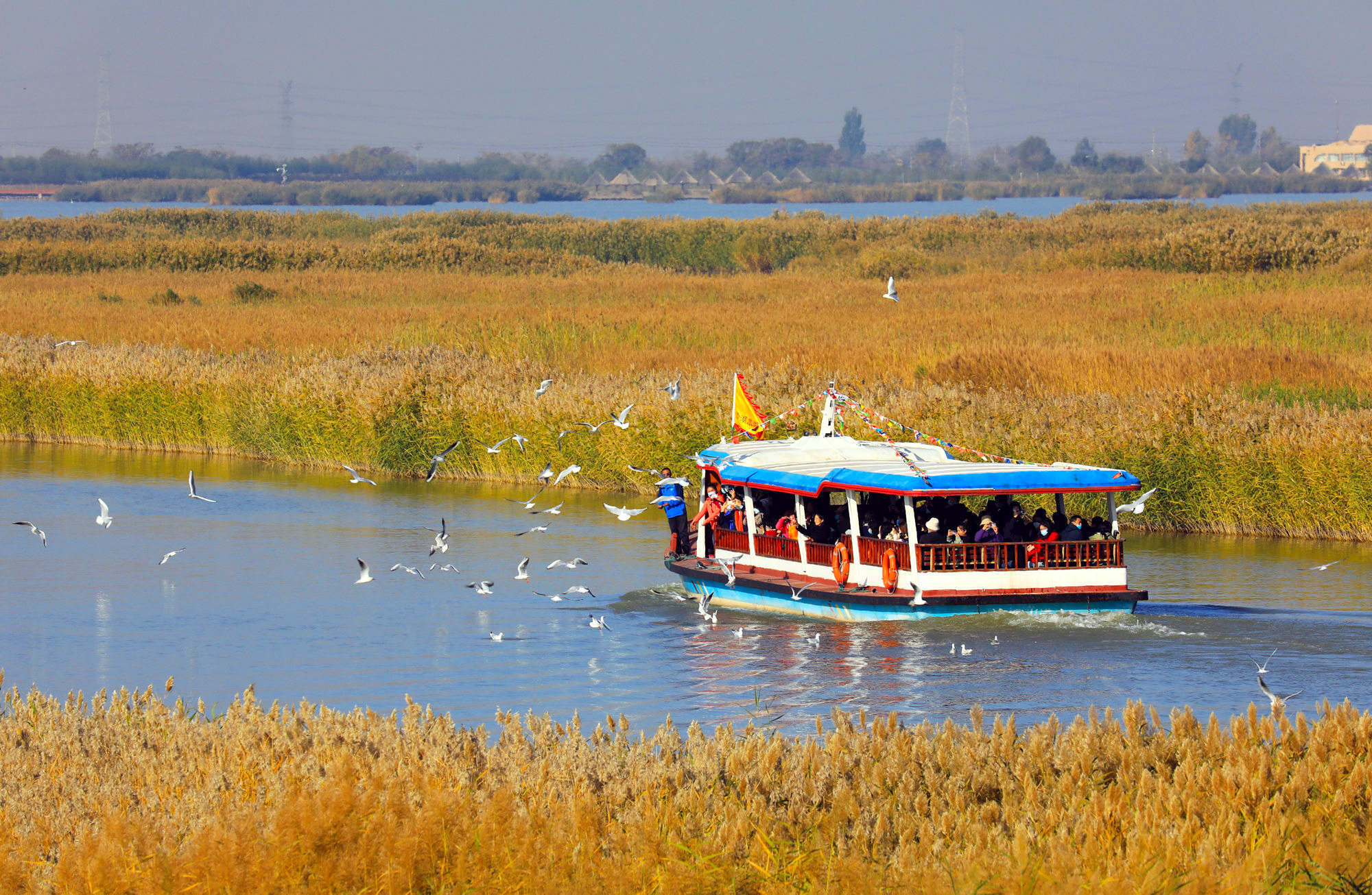 正值秋意浓厚的时节,宁夏沙湖的芦苇已经变得一片金黄,红嘴鸥“大部队”也如约而至,一只只红嘴鸥在湖面上巡游飞舞,一边鸣叫着一边拍打出水花,吸引了大批游客驻足观赏。与此同时,第二期【红嘴鸥寻觅记】研学活动,在宁夏沙湖景区成功举办。