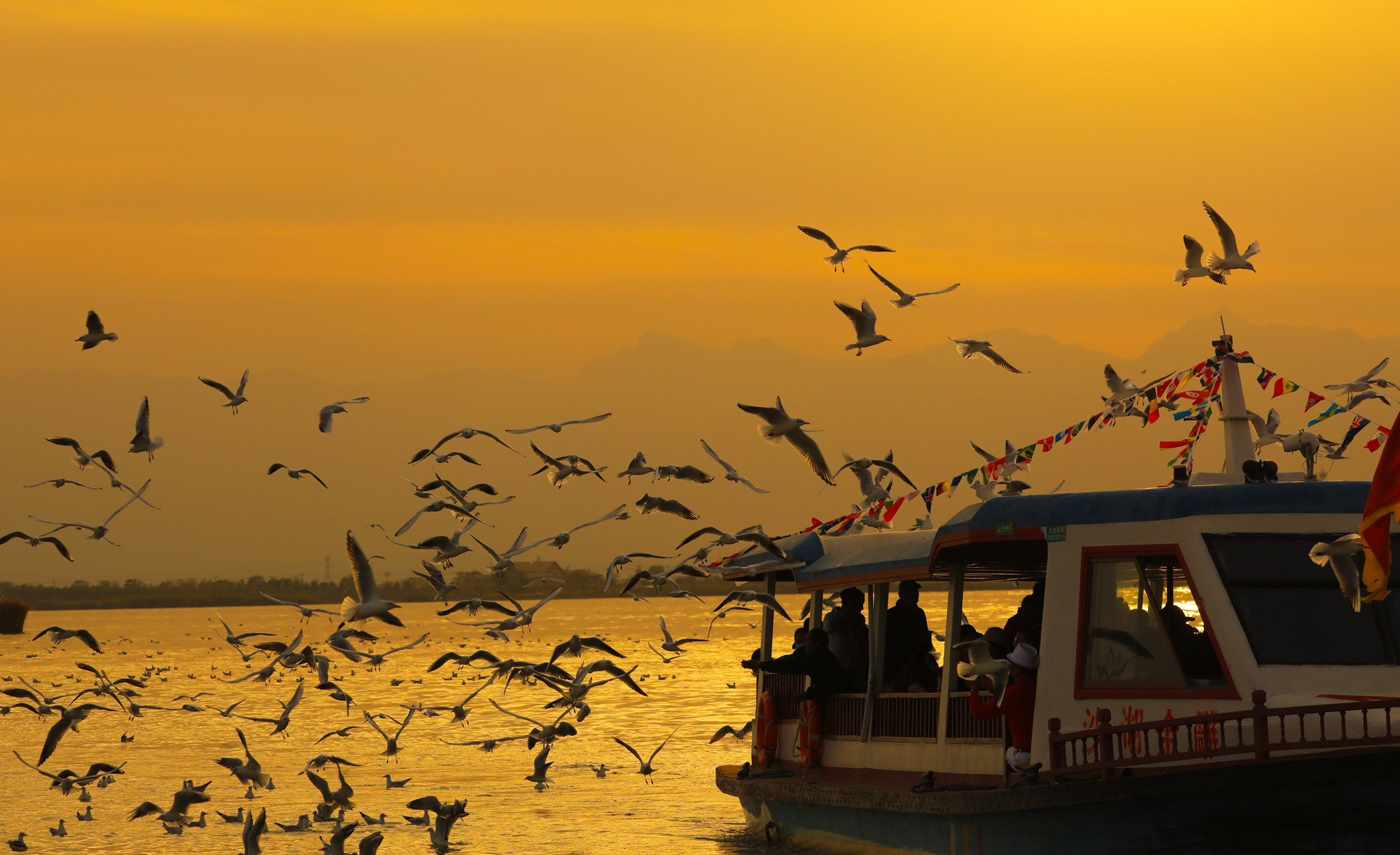 人与自然和谐相处,是“生态文明”最生动的诠释。看着眼前这群红嘴鸥,或在水面嬉戏、或在空中飞翔、或停留在彩虹桥上、或跟随船只来来往往……同学们个个喜出望外,争先恐后地伸出小手给红嘴鸥投食。