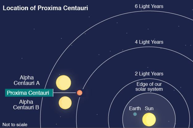 半人马座比邻星是最近的半人马座α星系中的三科恒星。图像来自ESO/BBC。