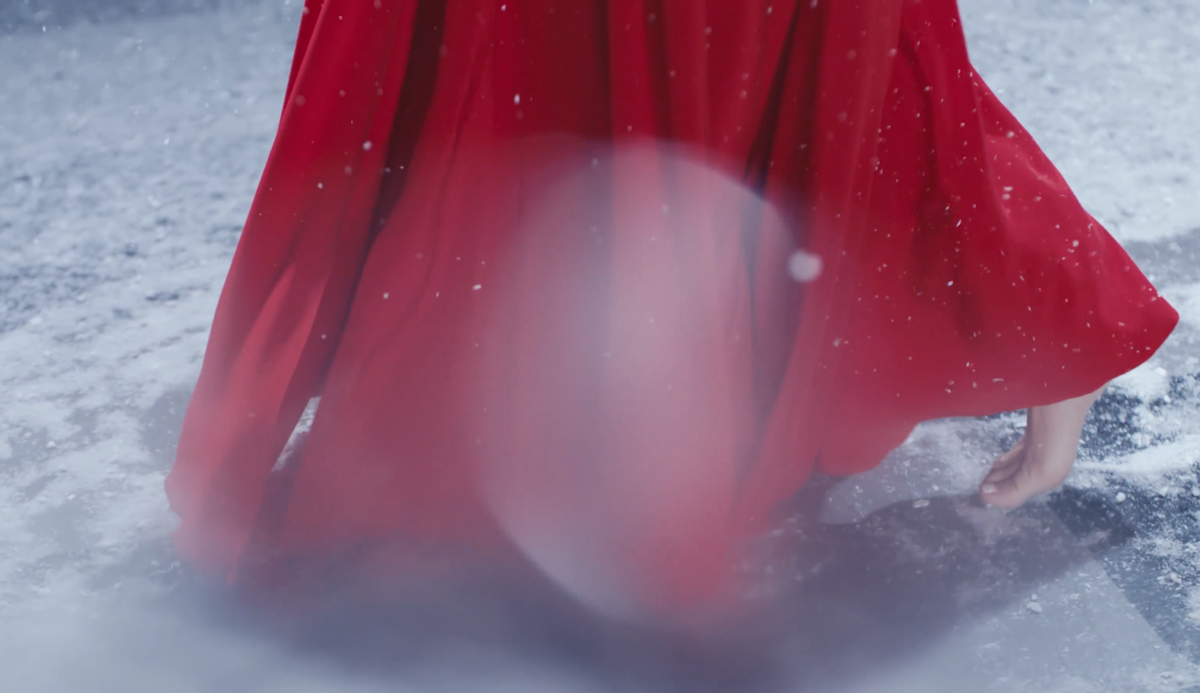 从视频中看,佟丽娅是光着脚在雪中起舞。镜头一转拍到佟丽娅光着的脚丫,双脚被红色长裙遮住一半,地上全是刚飘下的雪花,整个画面看上去干净又唯美。