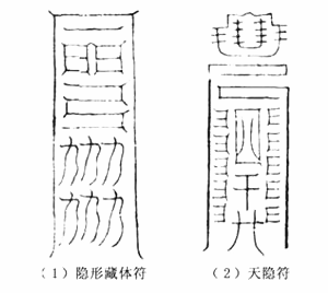 图版1:《鬼谷子天髓灵文》收录的隐身符二种(1)隐形藏体符;(2)天隐符