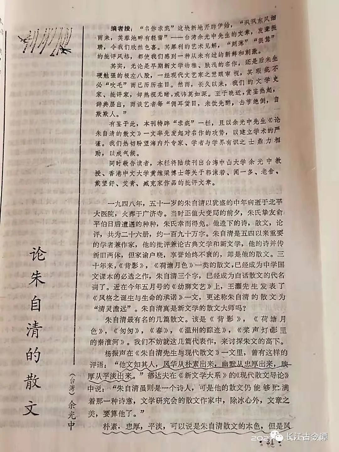 余光中在文中并没“全面否定”朱自清,而是有赞有弹。
