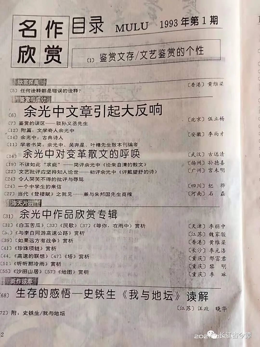 说是“打头炮”也稍有些不妥,因为这是余光中1977年在香港中文大学任教时的旧作。接着《名作欣赏》又转发了余光中《评戴望舒的诗》、《抽样评郭沫若的诗》等批评早期新文学名家名作的文章。