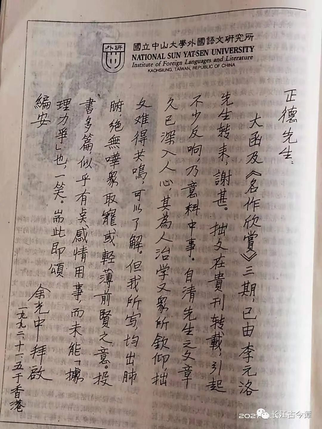 事情越闹越大,两岸的文人学者围绕余氏文论,吵得不可开交。而作为这场论争“导火索”的余光中本人,态度却出奇平和。他给《名作欣赏》写了一封短信,再次重申了自己的立场。