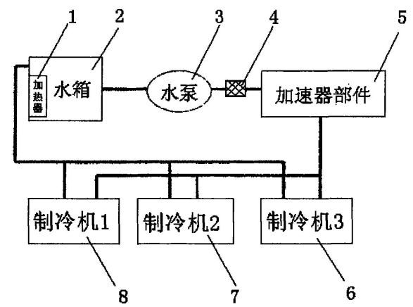 电子直线加速器可广泛应用于许多行业领域。加速器在工作的过程中,多个部件会产生大量的热量,器件对温度要求在相对比较稳定的状态才能保证加速器的正常工作。水冷系统是加速器的主要辅助设备,其作用是采用循环水对加速器的加速管、速调管、扫描盒波导窗、聚焦线包等各负载进行冷却。同时通过加热和制冷的手段使水温恒定在设定的范围内。