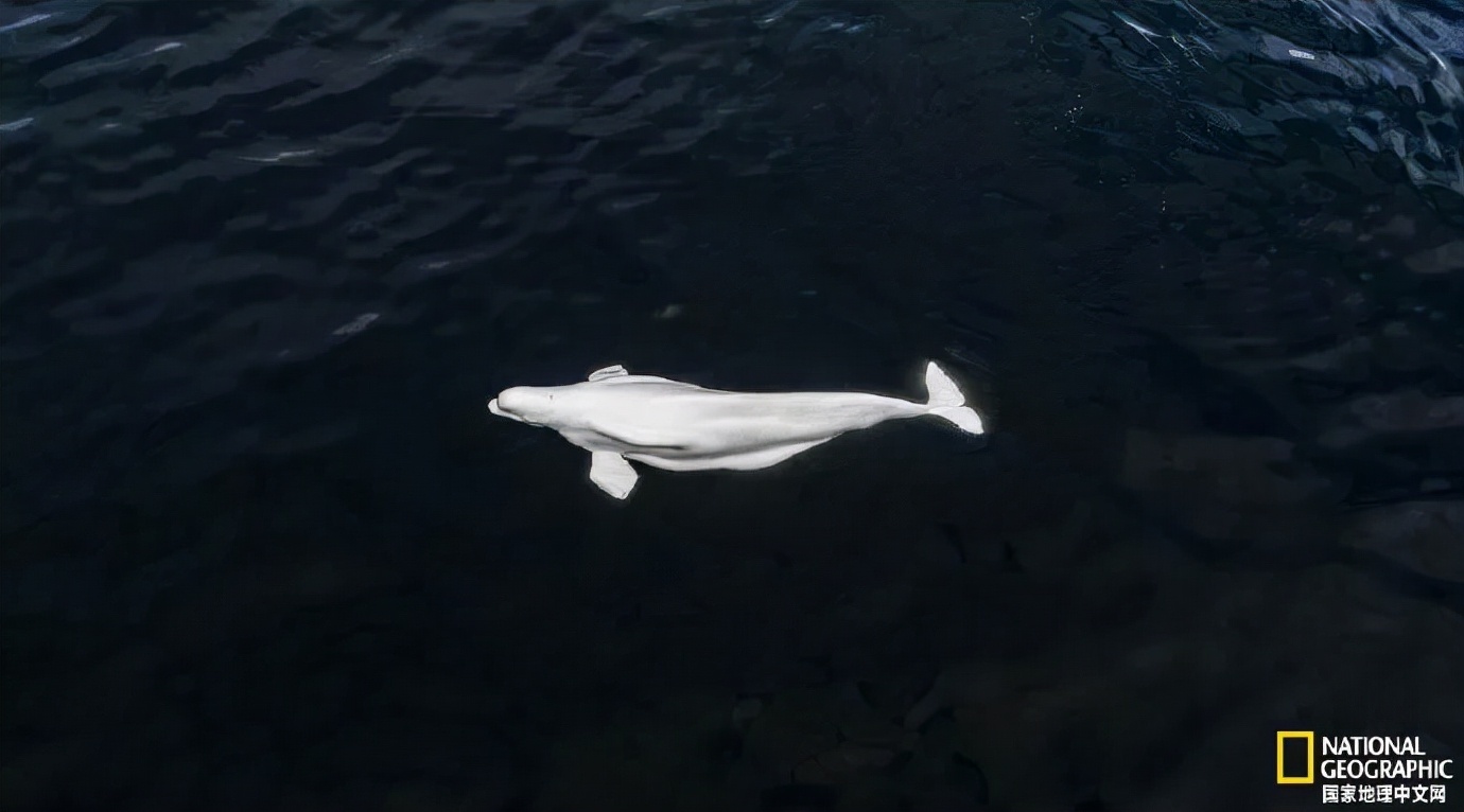 背鳍是鱼或鲸背部的鳍,主要起到平衡作用,协助身体运动和前进。白鲸没有背鳍,但是长有背脊。背脊有助于白鲸冲破冰层,维持换气,保障呼吸。此外,没有背鳍的白鲸可以在靠近冰层的区域避难,而虎鲸因背鳍过大,无法靠近水面。