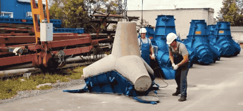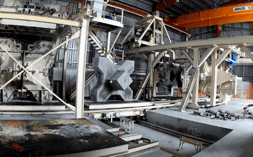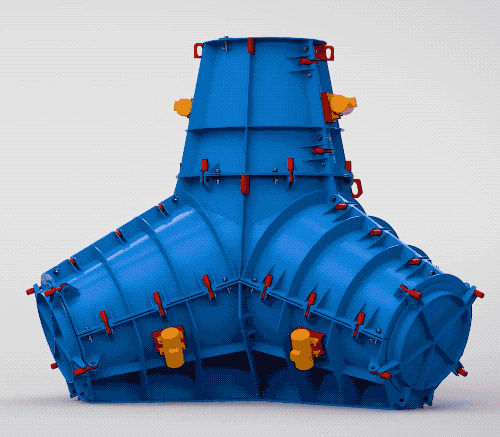 我们今天的人工块体的正主确实会难搞一些,以前我翻过一本港口航道工程相关的教科书,里面有介绍过这种消波块,法国最开始用的,样式的翻译就叫“四角锥体”。先来看个浇筑模具拆解的动画演示图~