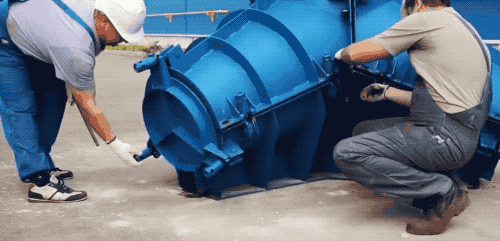 等到水泥彻底凝固后,工人师傅们给模具上的螺丝松松筋骨...