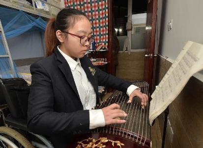 除了平时的课堂练习外,她还经常利用课余时间练习弹古筝,手指弹到破皮后,经常是一碰就钻心的刺痛,但她总是咬咬牙坚持。