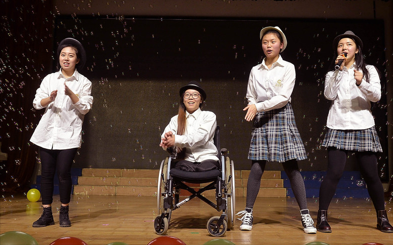 在这一年圣诞节,学校组织演出活动,黄梅花用轮椅做出的精彩表演,赢得了台下的热烈掌声。