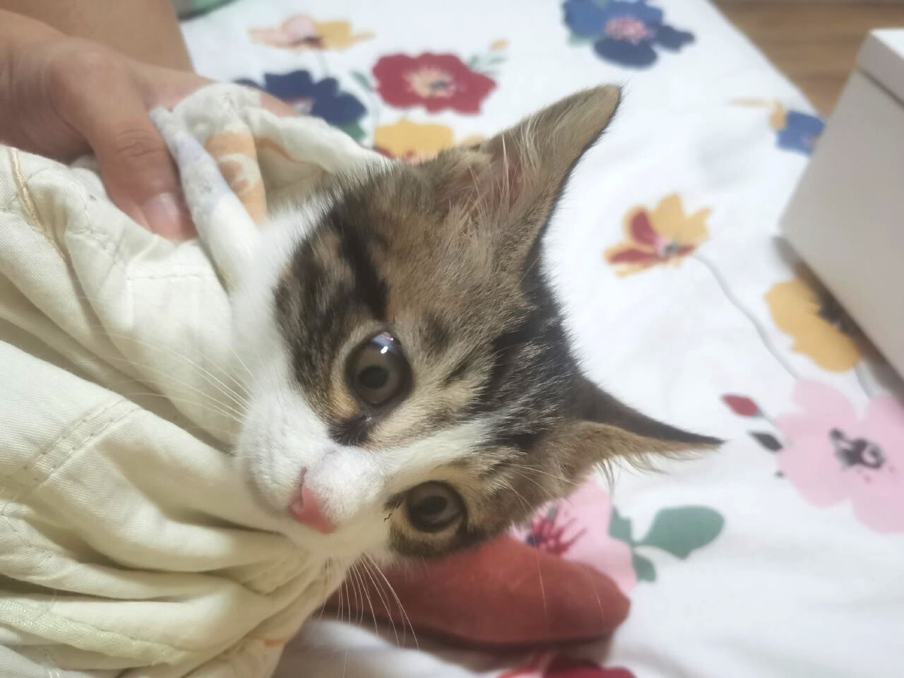 用毛巾将猫咪裹成条状,当猫咪被“控制”后,铲屎官的清洁工作就会事半功倍了。