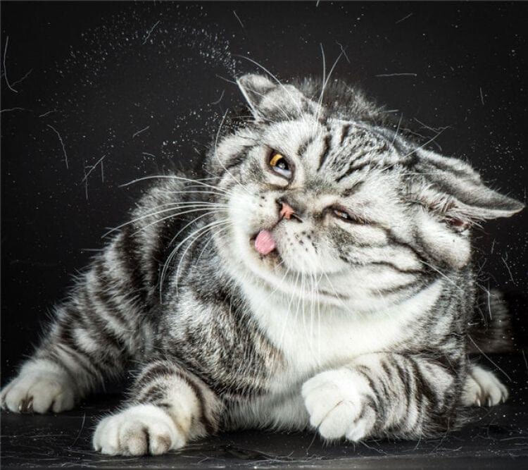 05 松开猫咪耳朵,让猫咪自发甩头,甩出耳垢与多余的清耳液;