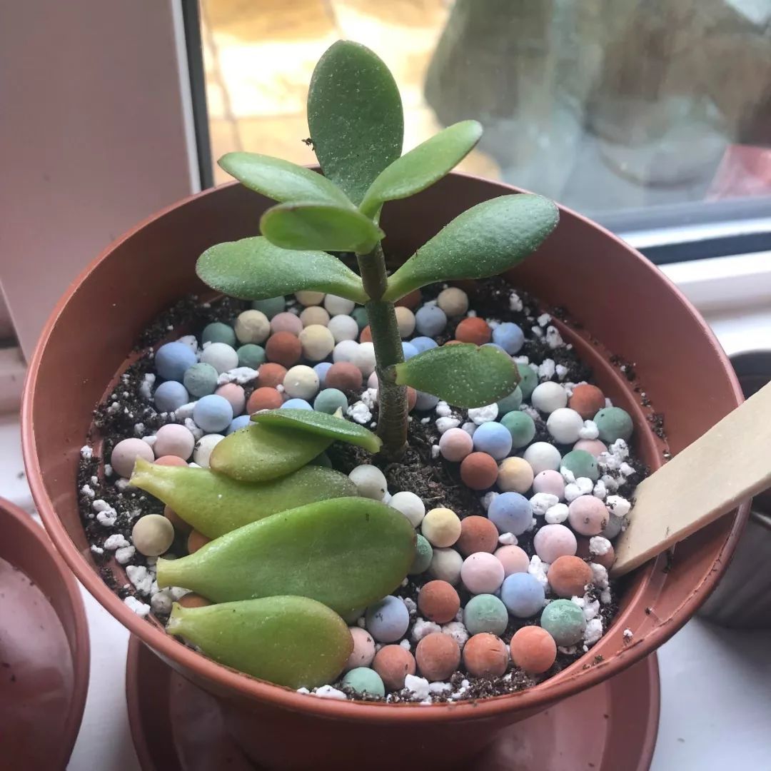 叶插繁殖的玉树幼苗会长得特别缓慢,养的时候一定要有耐心,嫩芽长出来之后可以慢慢见光,不要给太强大的光照,可以稍微在小芽周围的土壤处浇一点点水。