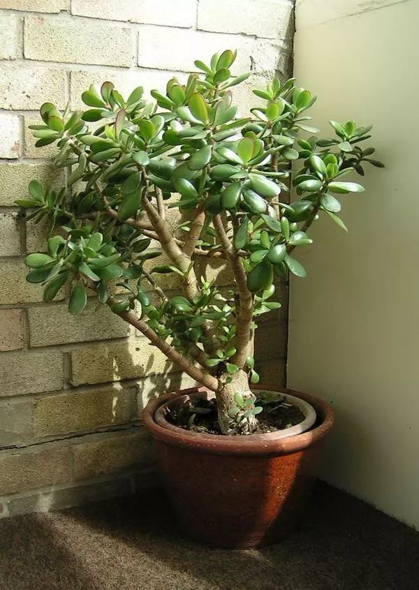 养护玉树盆栽要避免频繁给水,它对水分是比较敏感的,水多会导致根系和茎腐烂。