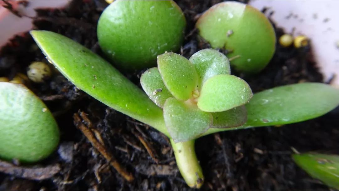 有时候玉树的叶片是先长出根系,它有时候是先在叶柄处长出小根系,有时候则是先在叶柄处长出小芽。