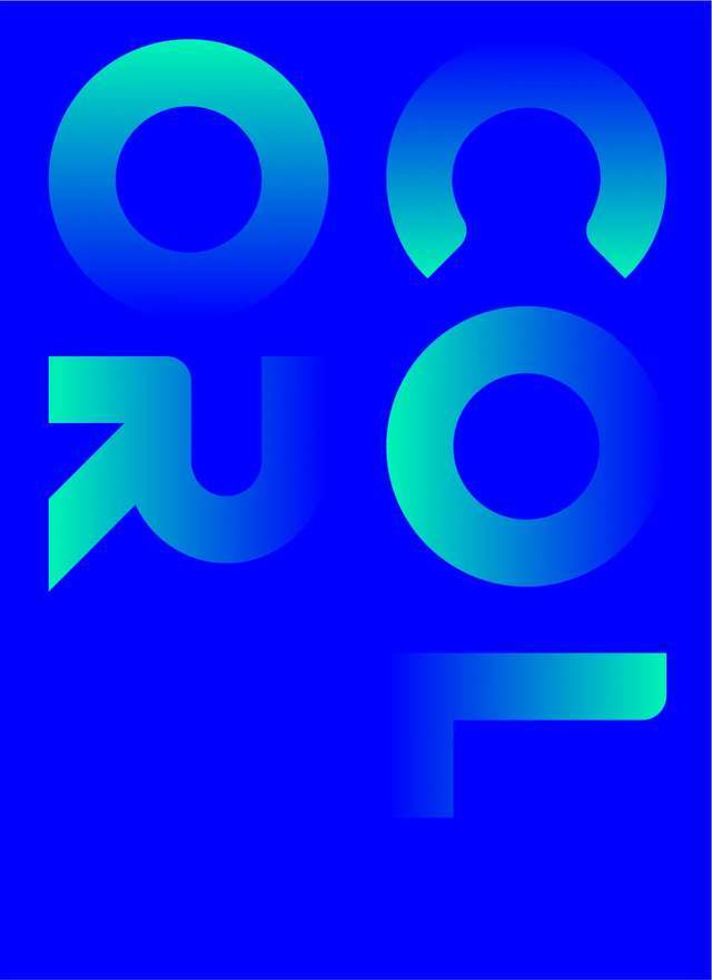 将英文转换为轮廓,给每个字母加上不同角度的渐变色,颜色依旧沿用蓝绿色。