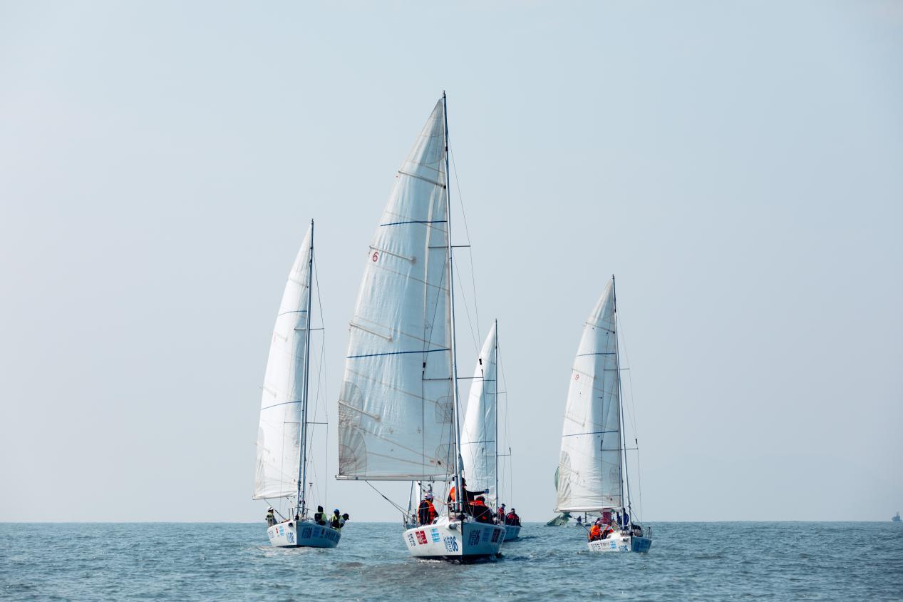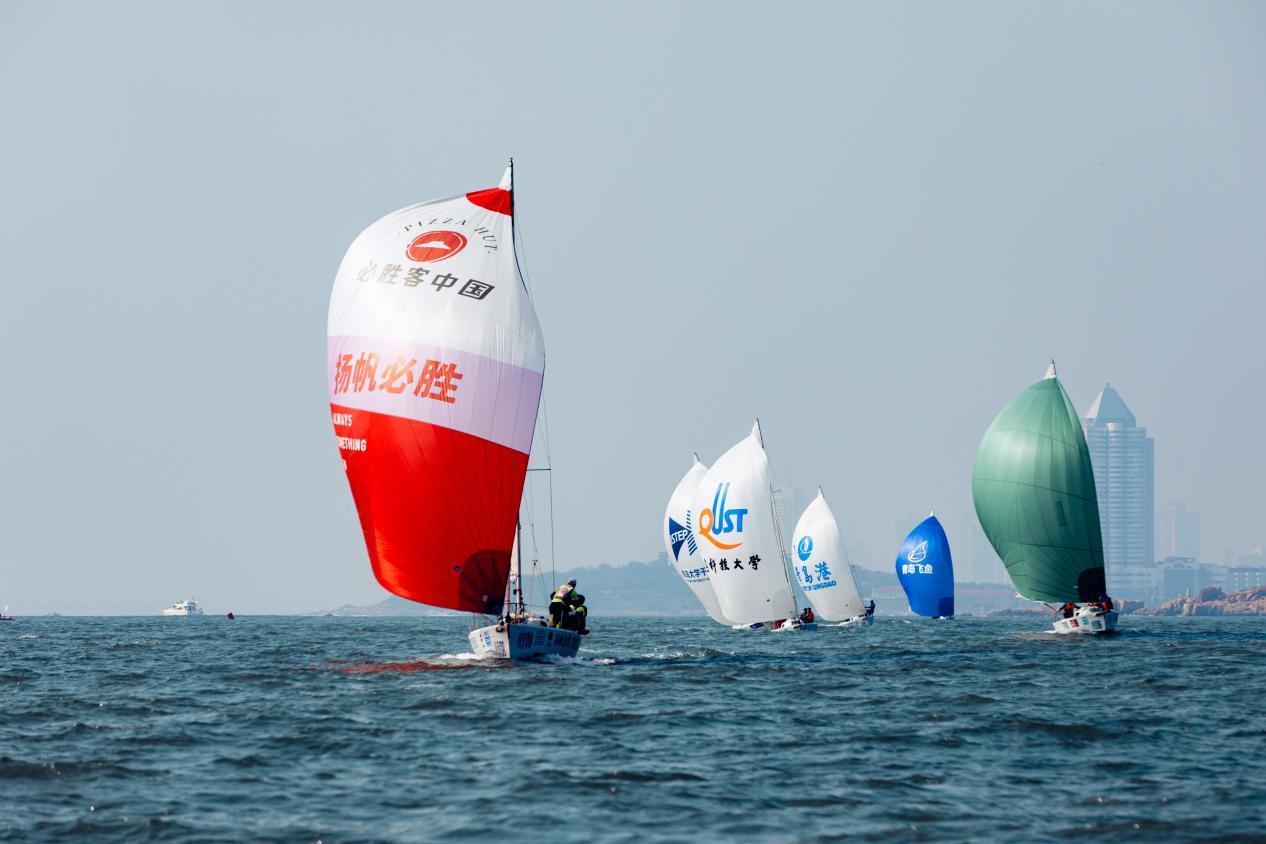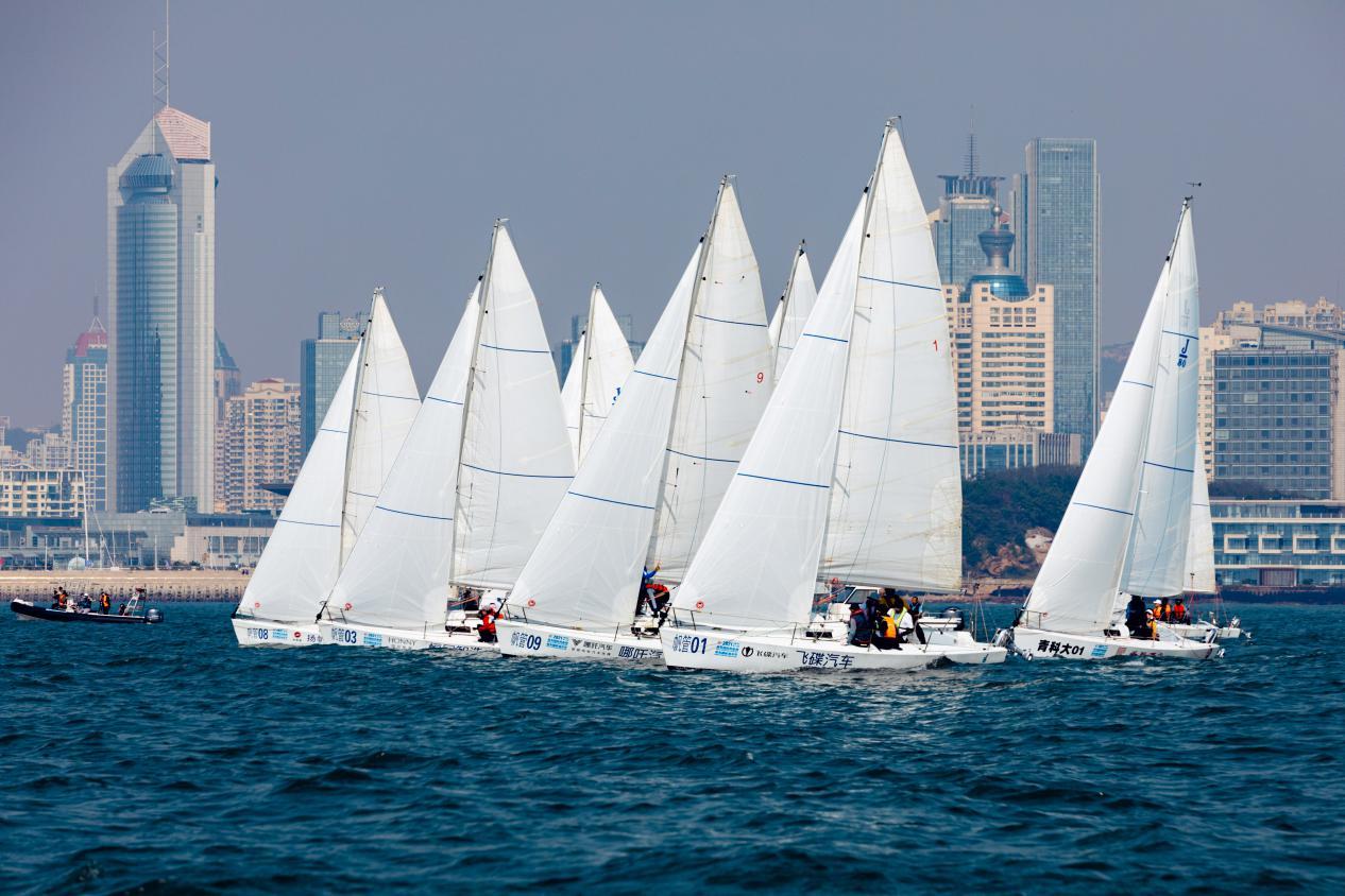 上午11时,首轮竞赛随着橙色起航信号旗的发出正式拉开帷幕。青科大校友帆船队、青岛大学大源号、青岛大学千里行号、青岛大学三队、青岛飞鱼帆船俱乐部、青岛科技大学帆船协会队、河北港口集团帆船队、深圳海狼队、青岛帆船之都队等9支参赛船队驾驶J80龙骨型帆船乘风破浪,自信启航,竞技浮山湾。