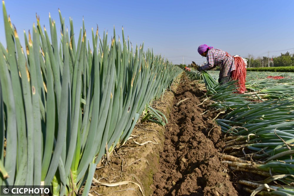 金秋时节,山东省青州市东夏镇农民种植的大葱进入收获季,葱农们利用天气晴好的有利时机抓紧收获上市,葱田里一派繁忙景象。近年来,该市通过“企业+合作社+农户”“基地+农户”等模式带动农民进行规模化种植大葱,并不断引进高产、优质新品种,提高大葱的产量和质量,在满足市场需求的同时,带动了当地农业增效、农民增收。
