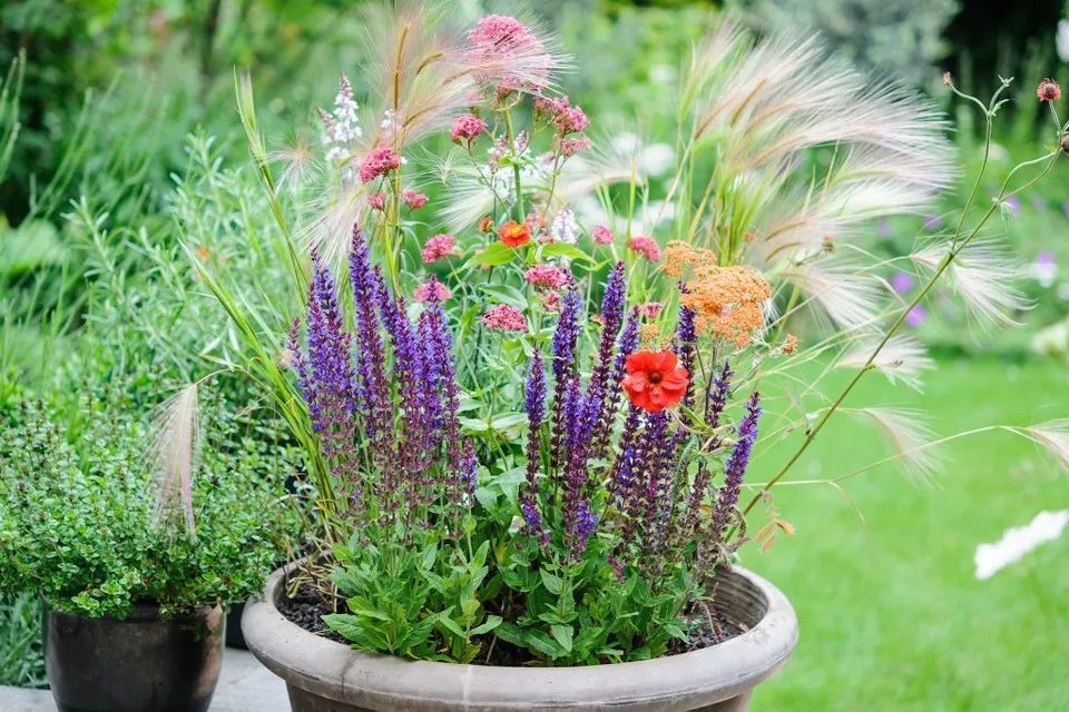 不需要过度频繁浇水,也能维持良好的生长状态,鼠尾草适合与金鸡菊种在一起,它们可以互相促进生长。