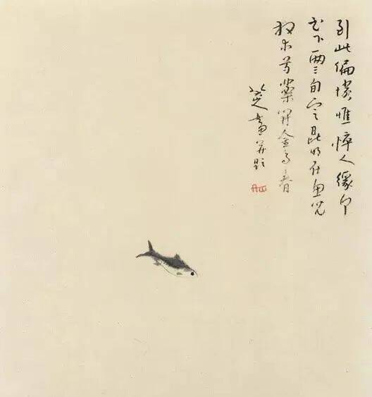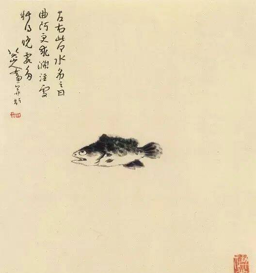 画鱼要能表现出在水中优游的样子,若画出水,那鱼就失去物性的天然。画时不必染水而自有水中的意态,才算是体会入微。