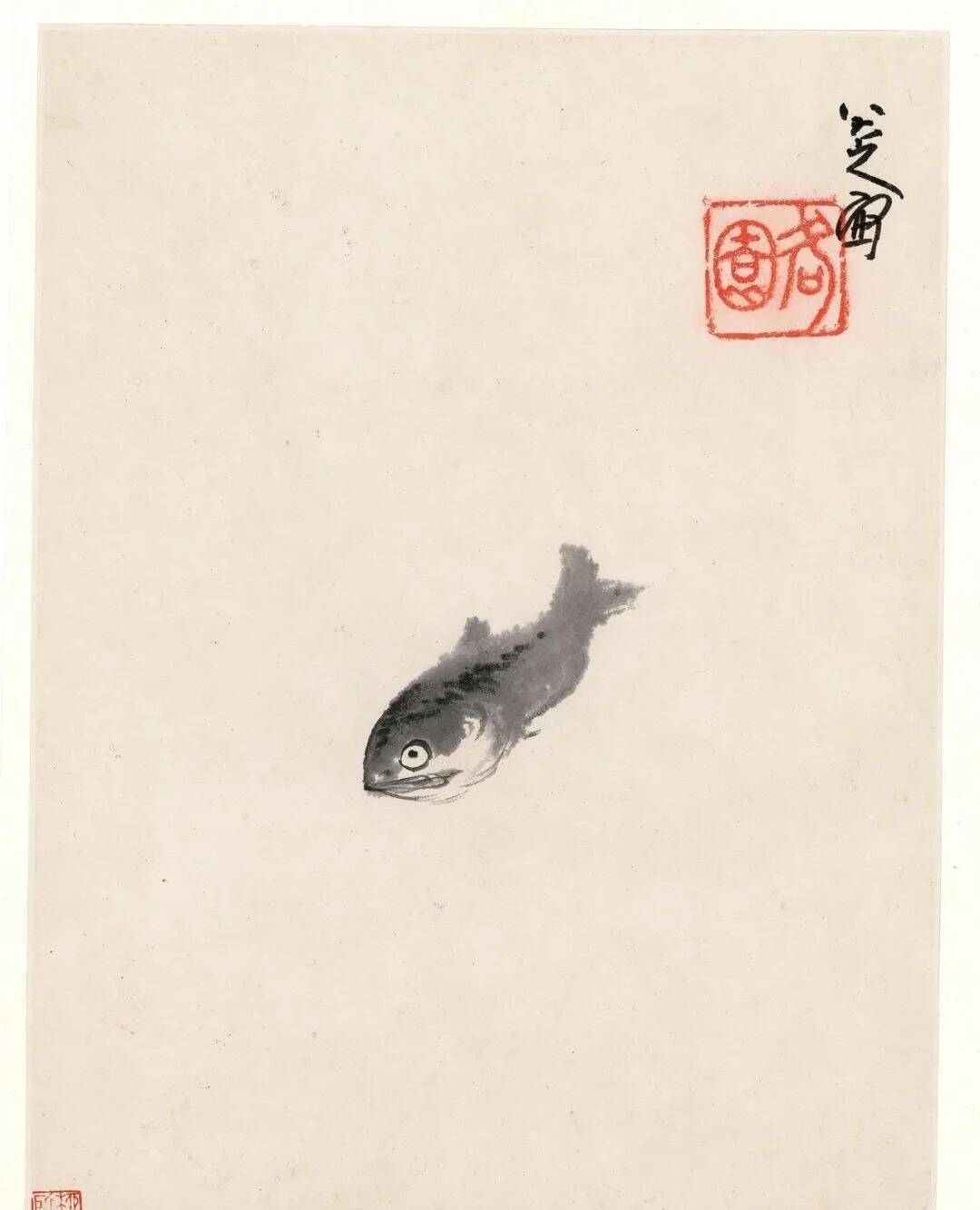 山人艺术的成就,必然是经过多少时间的观察和揣摩,才能由繁到简,却又表现无余。试看他画的嘴、眼、腮、鳍、脊、翅、尾、腹,哪一点不体贴入微,而鱼的种类不同,山人所画无不曲尽其妙。