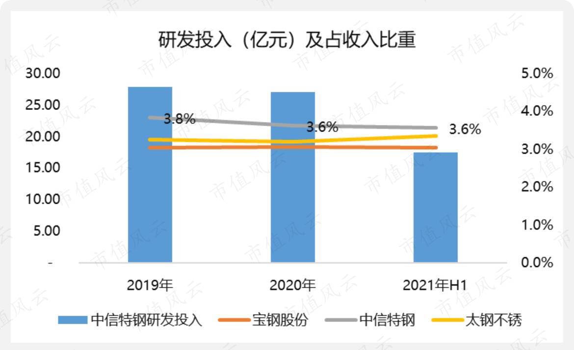 中信特钢、宝钢股份、太钢不锈每年都将收入的3%投入到研发并且全部费用化,但要实现钢铁大国到钢铁强国的突破,似乎有点不够。
