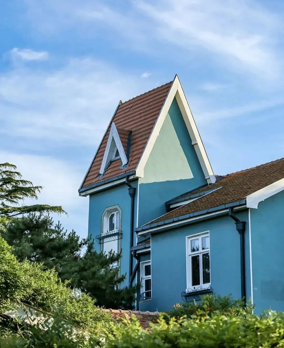 因拟邀丹麦公主来此避暑而得名,外部设计很是独特,由不规则斜顶屋面组成,绿墙红瓦,松柏掩映,宛如安徒生童话世界。