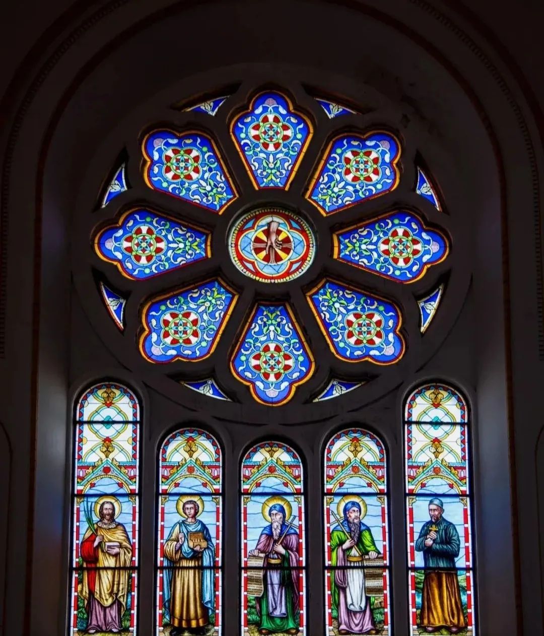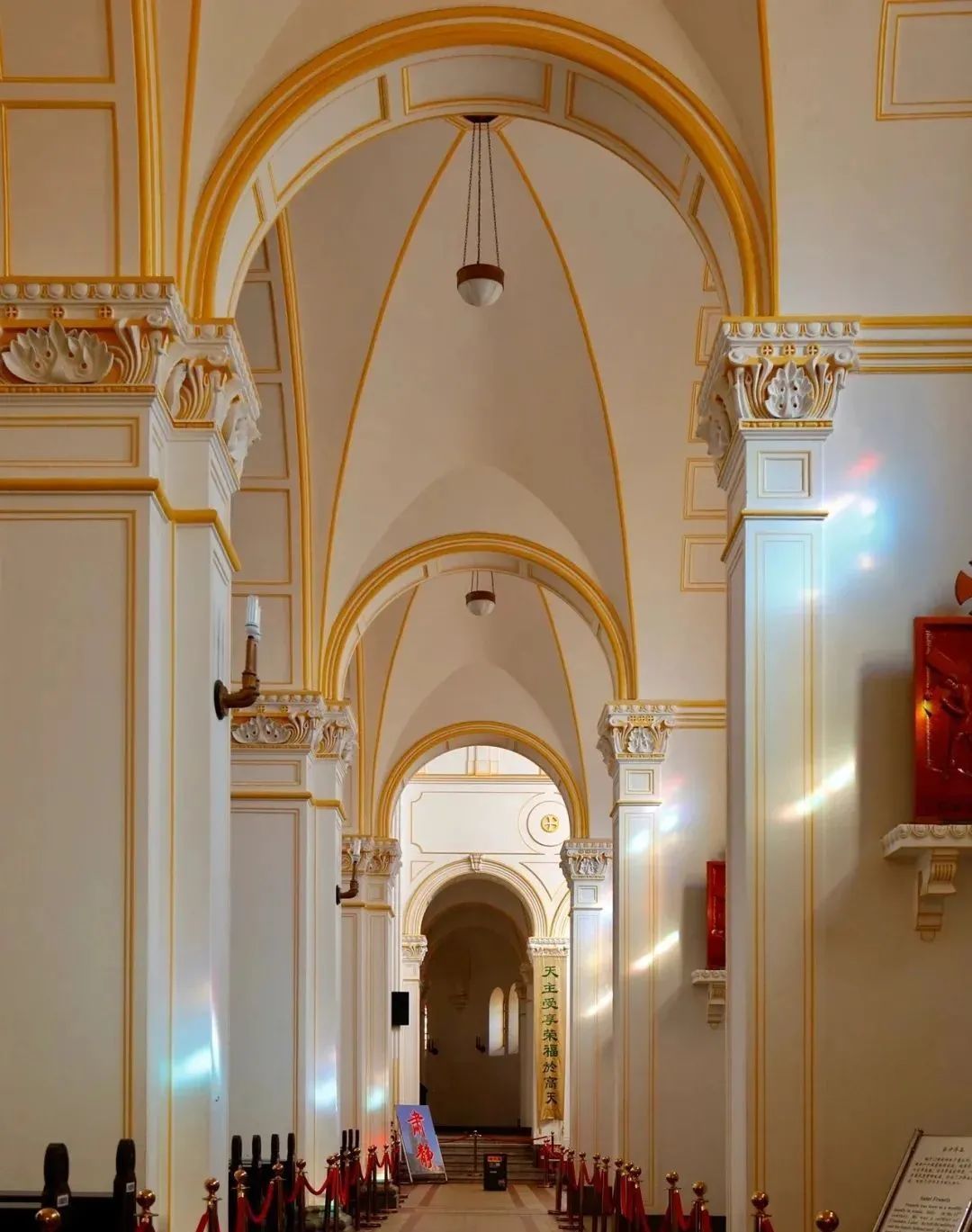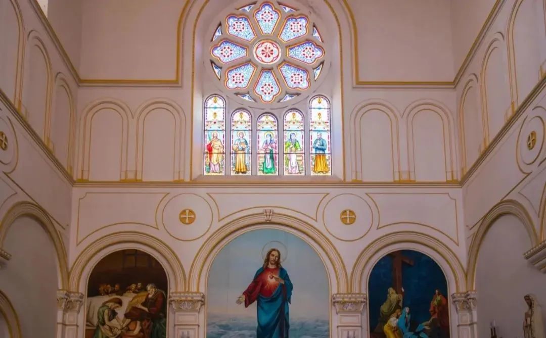 绘有圣经故事的穹顶和花窗玻璃,让整体画风在宗教之外多了一丝丝浪漫气息,成为一道独特的风景线。
