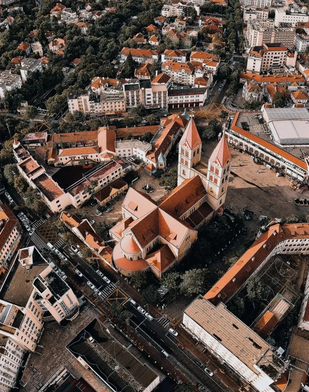 以钢筋混凝土与黄岗岩石结合而成的教堂,平面呈“十”字造型,两侧尖塔高耸入云,给人以雄浑庄重印象。