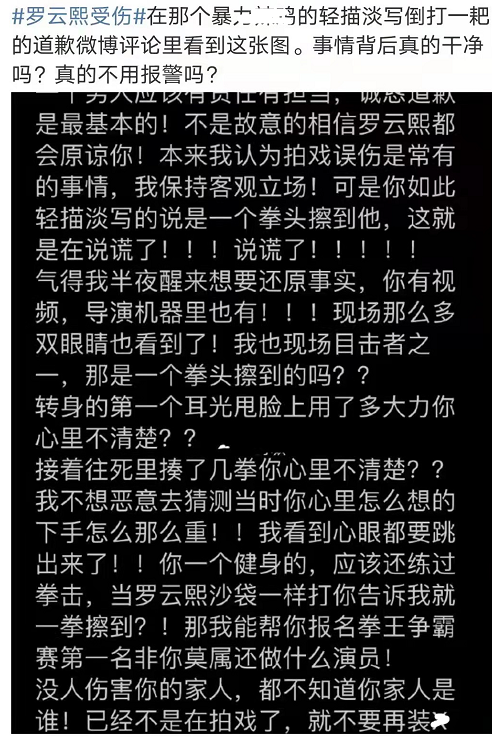 还有粉丝发出爆料称纪焕博是“往死里揍”罗云熙几拳,像打沙袋一样,所以导致罗云熙入院。
