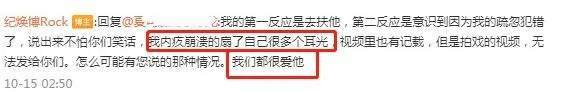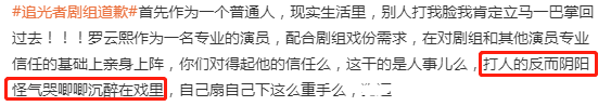 不过部分罗云熙粉丝似乎并不相信,拿着网友的爆料向纪焕博质疑,说他在罗云熙蹲下去时,连续打了罗云熙多下。纪焕博否认了这种说法,称自己第一反应就是去扶罗云熙,而且因为内疚崩溃到扇自己耳光。