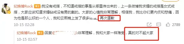 在评论区,纪焕博也回答了一些网友提出的质疑,例如疑似有人怀疑他是打人时手上戴了戒指所以导致罗云熙受伤。他也解释说之前发的只是求婚用的钻戒,只有女款,没有男的,自己没有戴戒指。并表示事先沟通过,想完成好最后这一场戏,但没有想到发生了意外,所以再次对罗云熙表达道歉。