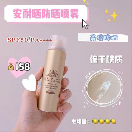 说它是防晒扛把子不过分!除了强悍的防晒力以外,它的防水效果也很棒,去海边玩真的没在怕的。而且,新版的喷雾进行了优化,喷雾喷出来没有油腻感,成膜后会很舒服,适合偏干性肌肤,好东西大家分享。