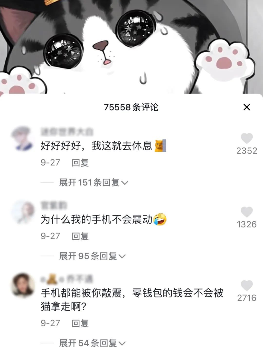 在一条“休息”主题视频中,“吾皇猫”被关在了手机小小的屏幕里,委屈地敲敲屏幕,表示手机都被用得发烫了,自己也热得满头大汗。为了能“休息一下”,吾皇猫亮着一双圆溜溜的大眼睛说道:“去休息好不好?让我也好好休息一下,好不好?”此条视频在抖音内采用了震动技术,吾皇猫敲击屏幕会使手机有实际的震动感,防沉迷更真实。