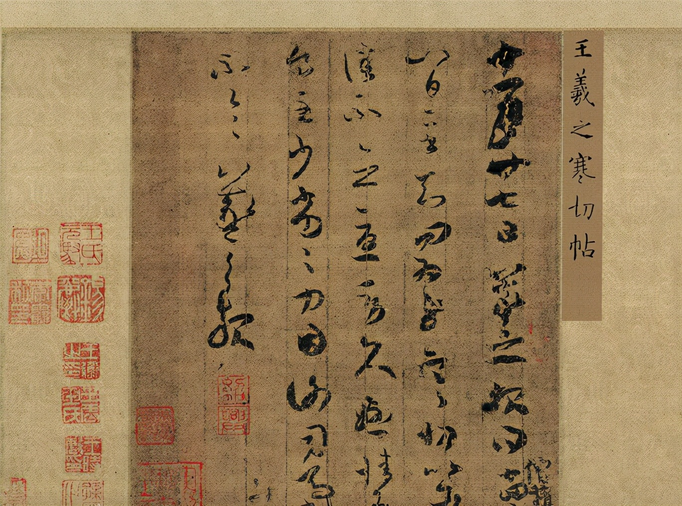下面我们一起来看看王羲之笔下最有意思的一张作品,也被称为狂草书法的标本件 《寒切帖》,此书法小卷被珍藏在了天津博物馆之中。据研究者透露,当时这一张书法作品是从清代宫中带出来的,被一个小太监给收藏到了天津,之后流传到了收藏大师的手里,最终再转到了天津博物馆里面珍藏。