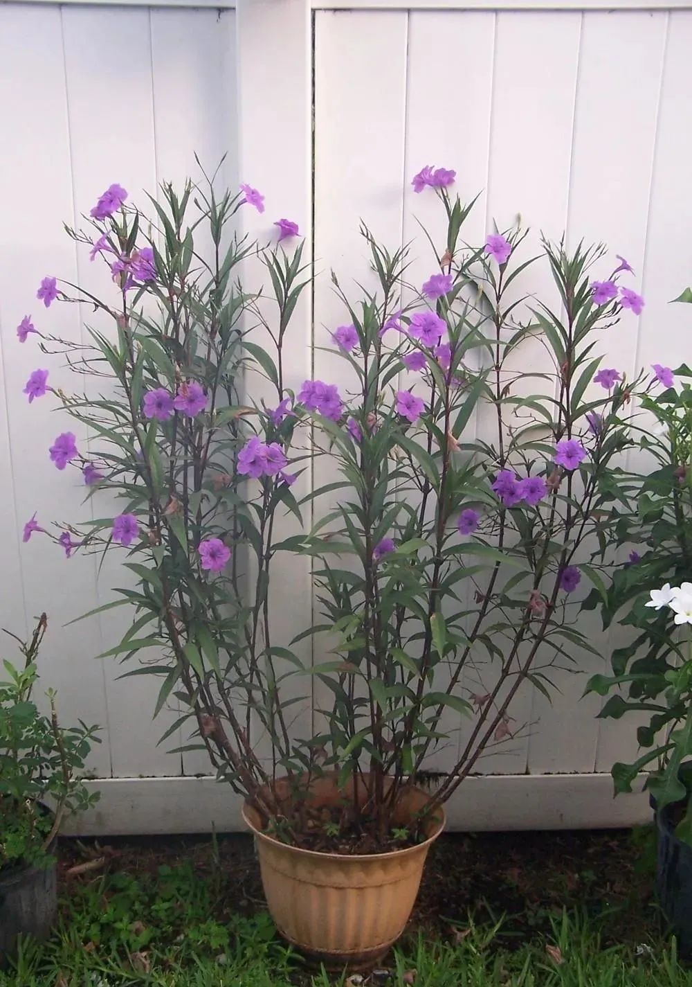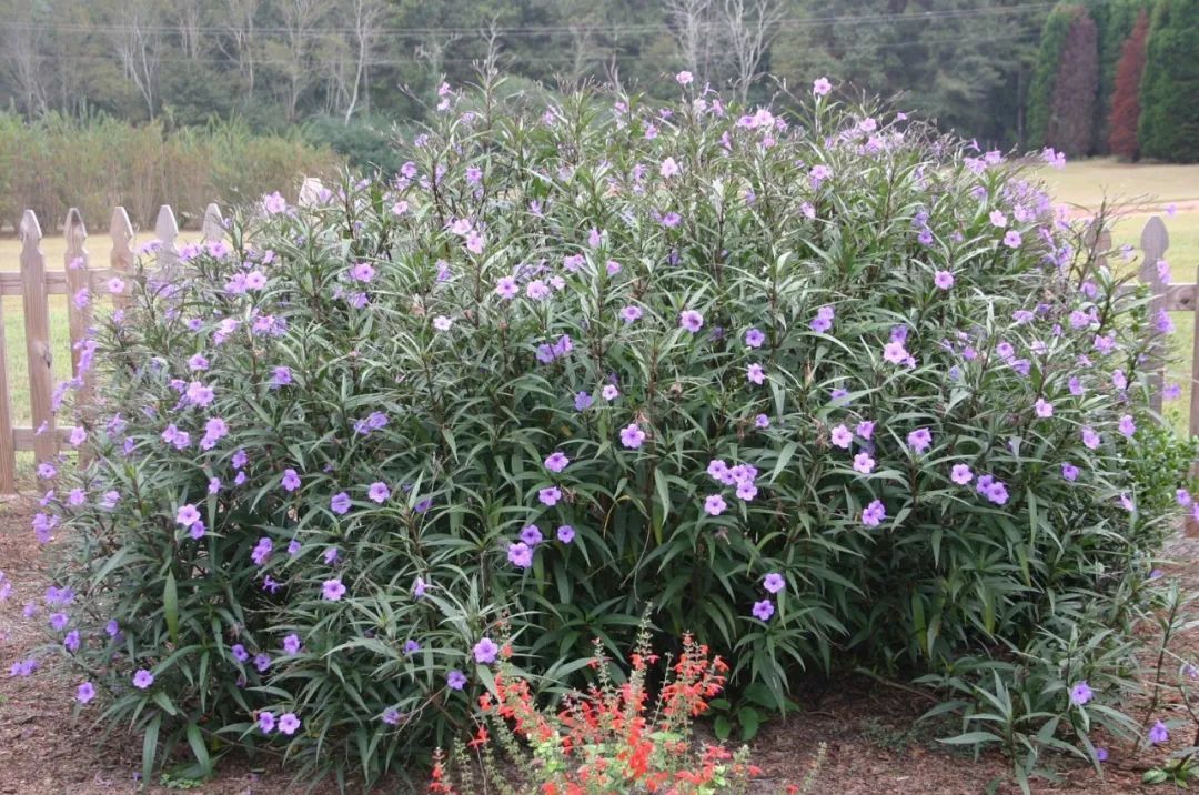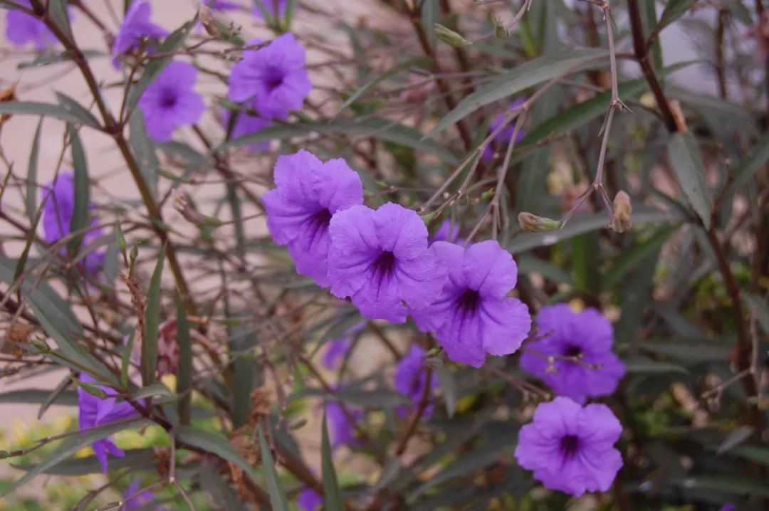 翠芦莉(Ruellia brittoniana)在南方是极其常见的一种开花植物,它有时候也会叫“蓝花草”,是产自于墨西哥地区的,它极其耐高温、耐晒且耐水湿的植物,非常适合种在院子里,也可以在花盆中种几株。