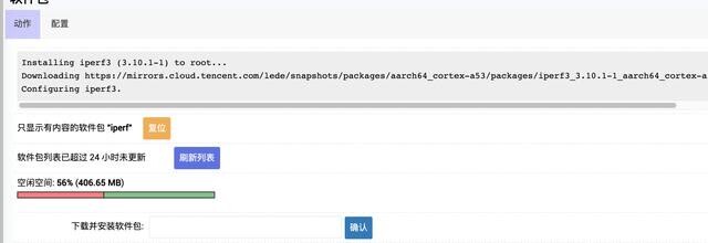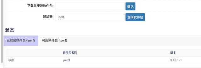 在下载并安装软件包里输入 iperf3,点击确认就会开始安装了。