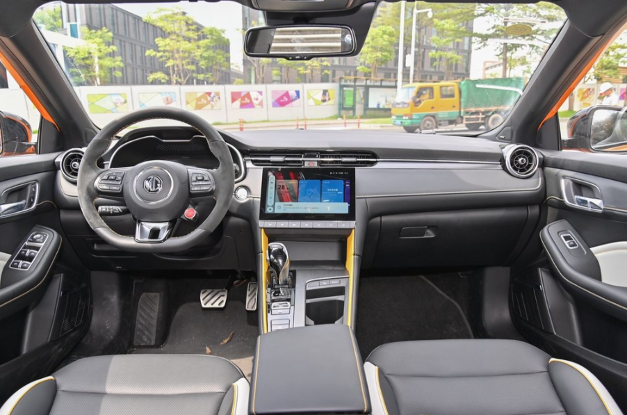 名爵6是T型中控设计,中控悬浮屏10.1英寸。银色金属踏板、炮筒出风口、双辐方向盘和较多撞色处理,显得比较活泼、俏皮,并依然明确表示凸显运动风格。