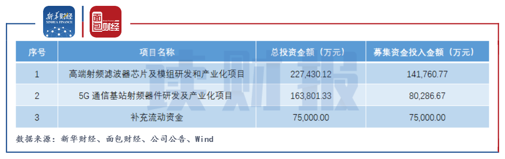 其中,高端射频滤波器芯片及模组研发和产业化项目的募集资金投入金额达到14.18亿元,占比接近五成。该项目拟设计开发高性能、高频滤波器芯片及模块产品,增加滤波器在高频高性能方面的产品布局;建立高频、高性能滤波器的工艺平台,与Foundry(晶圆制造商)配合完成工艺的调整与工艺能力的提升。该项目建设工期为5年,共分两期进行。