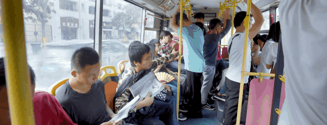 公交车上,年轻男人一个猛冲。