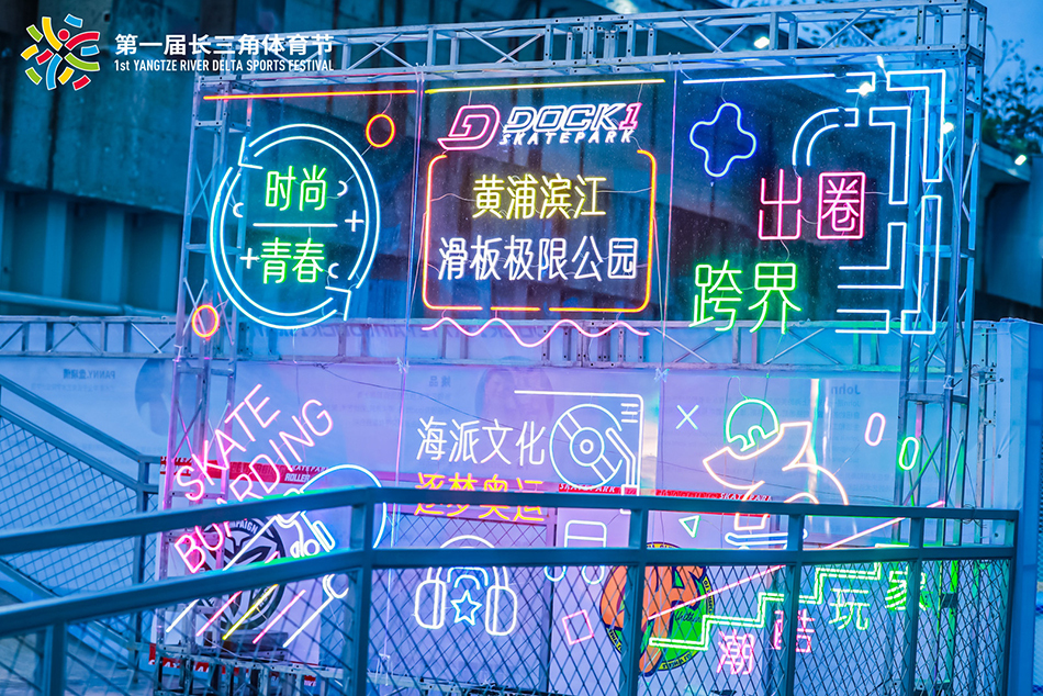 百年工业遗迹焕发新生机,10月16日晚,在黄浦滨江一号船坞,黄浦滨江滑板极限公园正式开园。