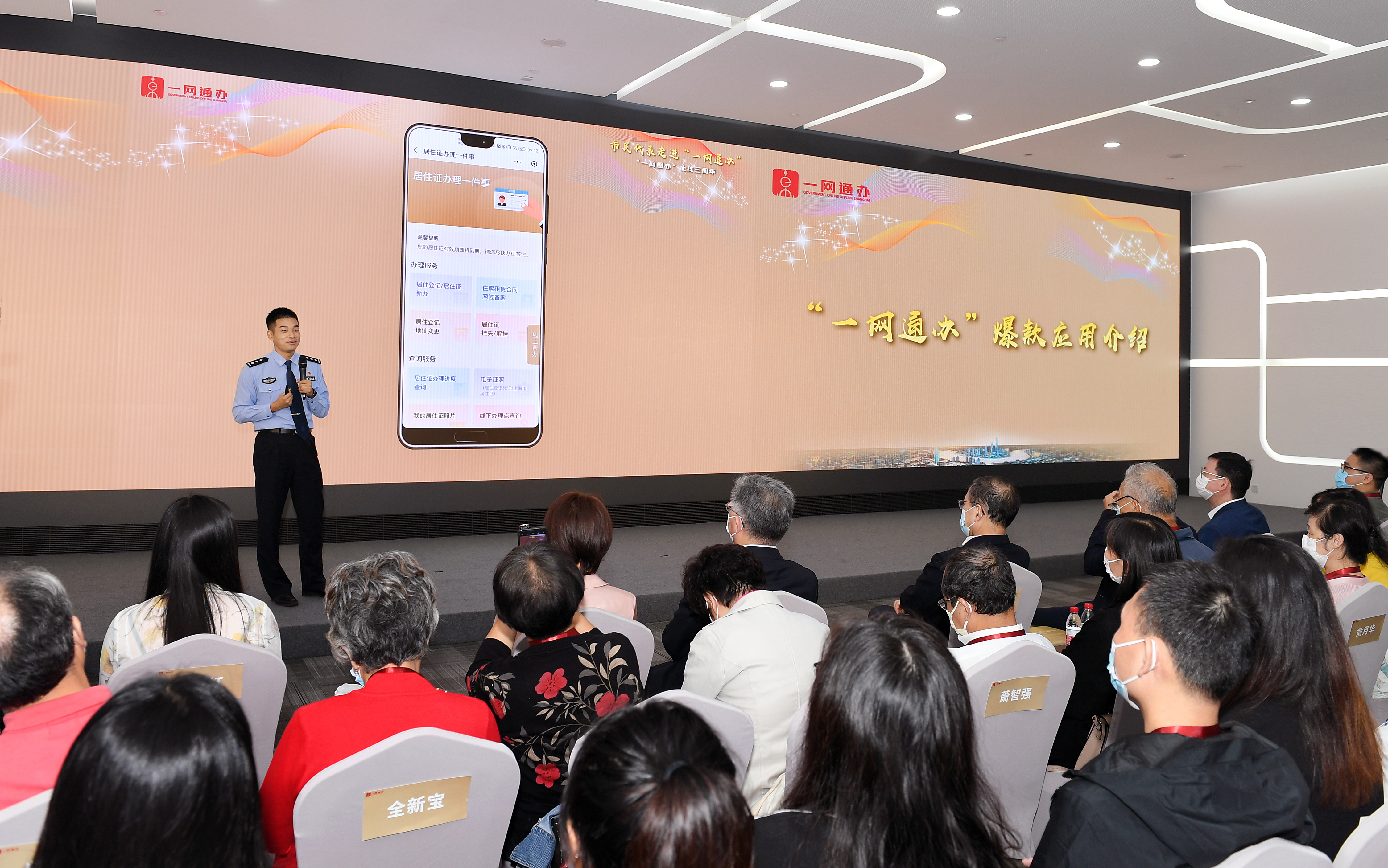 上海交警黄俊讲解“一网通办”应用(上海市大数据中心 供图)