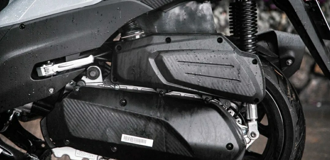 像这台水冷四气门的发动机,最大功率18kw,虽然比巡弋300少了2个KW,但它还是属于300cc踏板级别里面,最大功率的强者之一,车架也是按照巡弋300的结构去打造,区别就是一个进口一个国产,但结构不变。