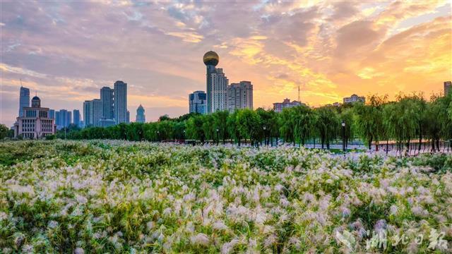 10月18日,武汉秋高气爽,汉口江滩大片芦苇在夕阳的映衬下随风摇曳,秋风虽裹挟着丝丝凉意,却也把满园的桂花香尽数揽入其中,让路过市民游客无不陶醉。(湖北日报全媒记者 何宇欣 摄)