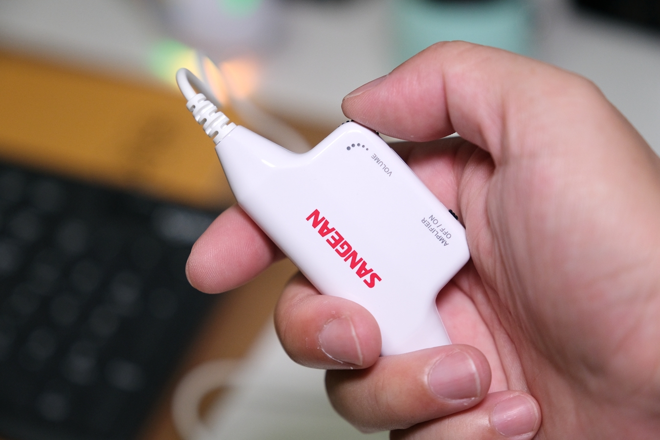 既然有声音外放的喇叭,自然也少不了音量调节了,山进PS-300的线控集音量调节滚轮、扩音器开关拨键和电池仓于一身。