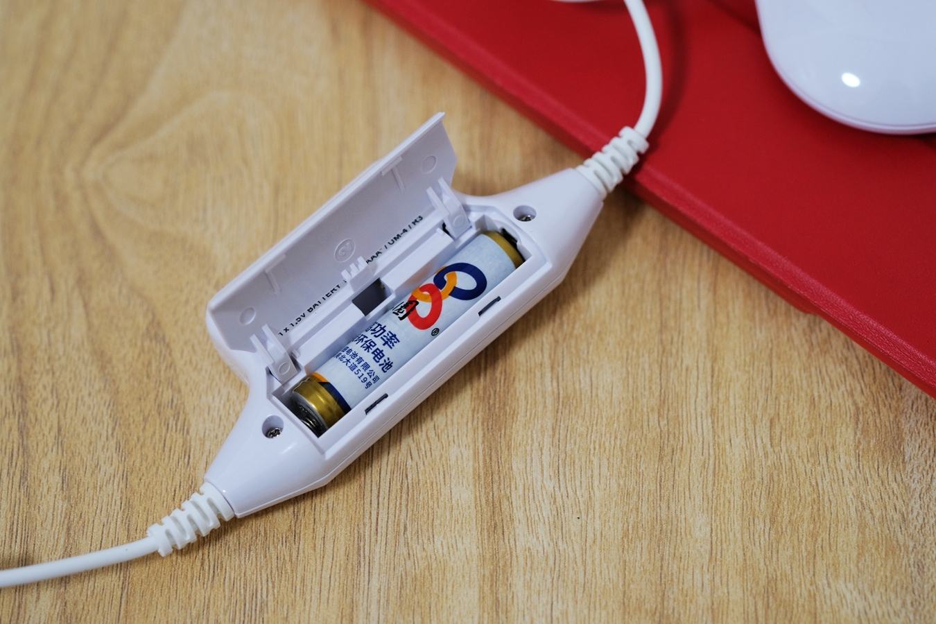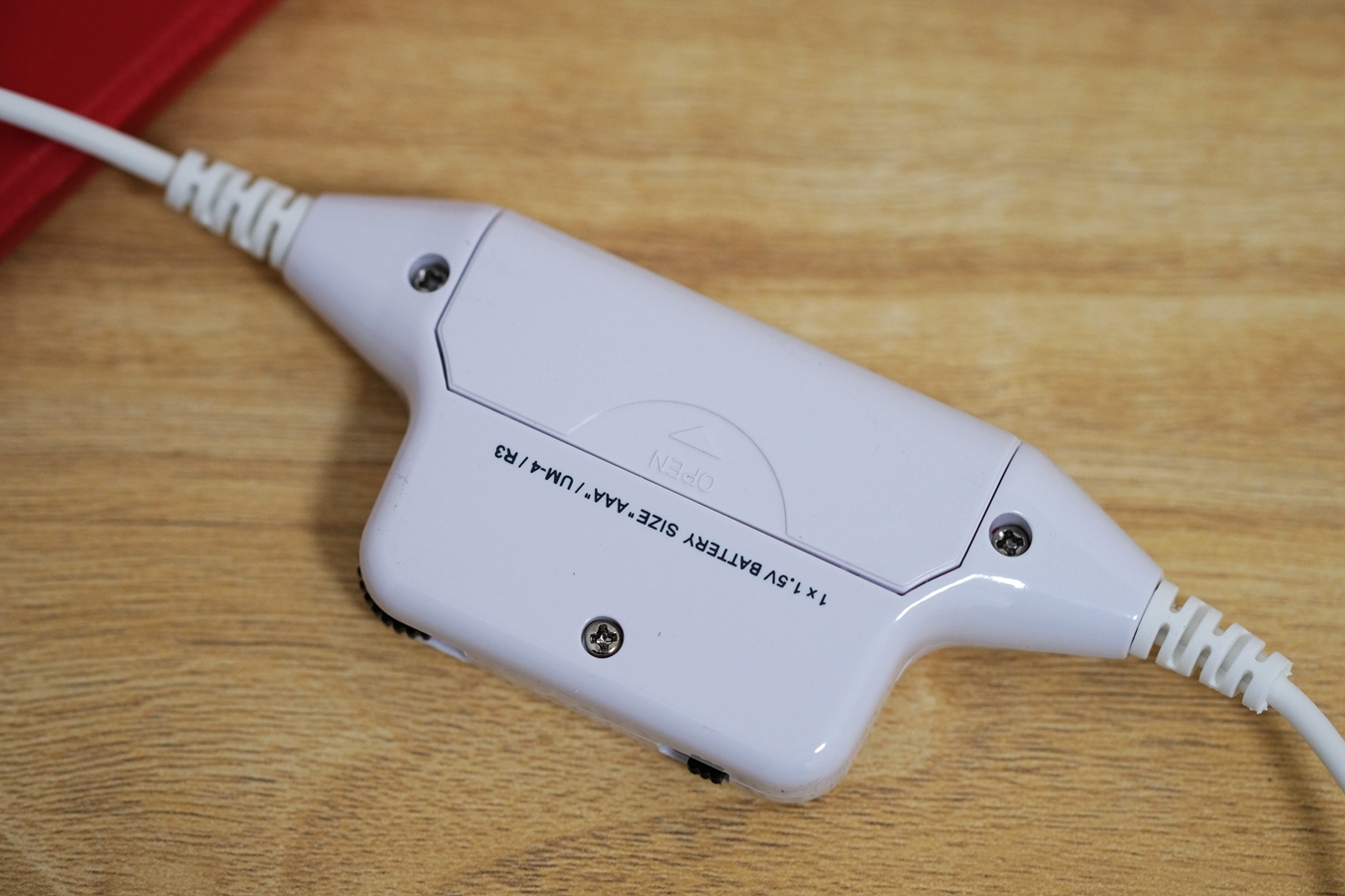 在线控的背面是电池仓,可安装1粒7号电池。在不安装电池的情况,山进PS-300也是可以正常使用的,只不过就少了扩音器功能了,我平时都是使用的手机和iPad来与山进PS-300搭配,没安装电池也一样用得妥妥的。