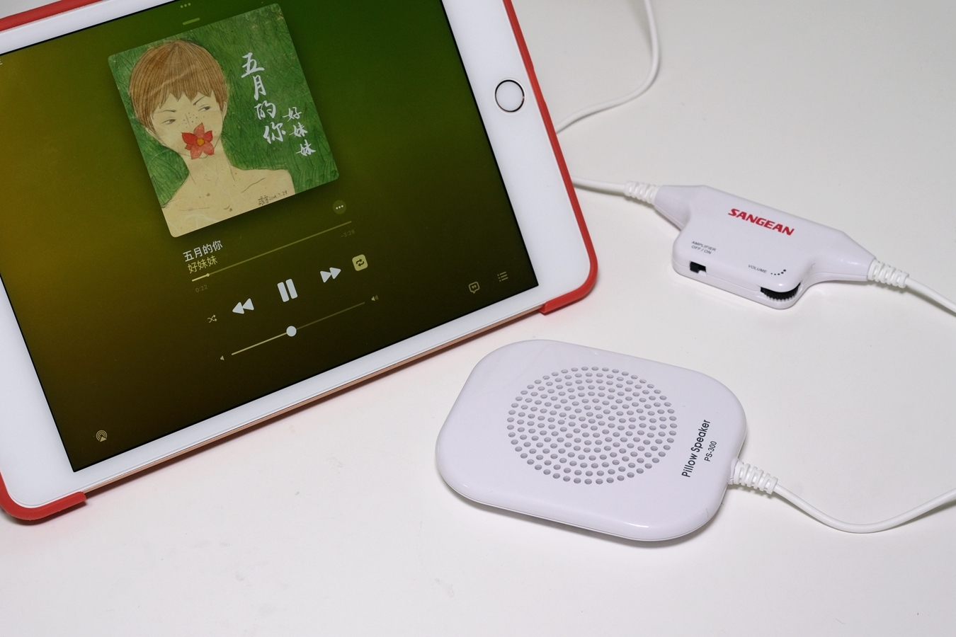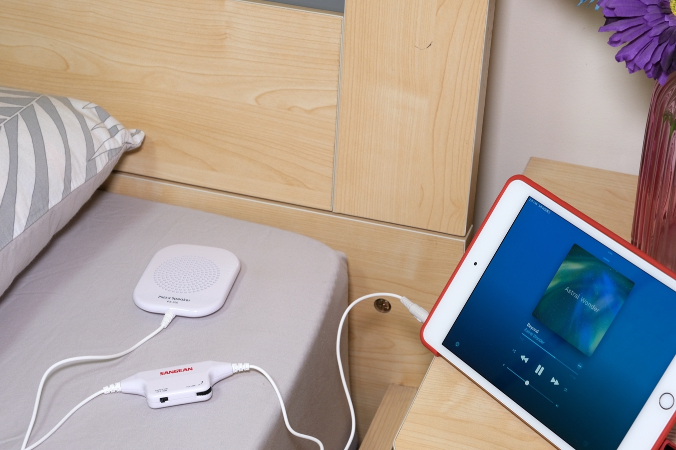就实际体验来说,山进PS-300比我想象中要好用多了,放在我的耳畔边,调到合适的音量,我就可以一个人独享声音为我营造的温馨氛围,当音量调大一些,喇叭也不会产生震动,而且声音比较清晰,音质表现出色。当双耳稍微离开枕头,声音就完全听不到了,我想这正是枕边听的神奇之处,没有佩戴耳机的别扭,没有影响他人休息的顾虑。