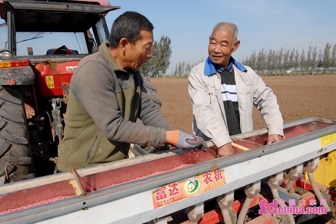 驱车行驶在即墨区段泊岚镇的广袤田野,广大农民群众抢抓农时,全面展开秋种作业,忙着旋耕、播种、施肥等工作,在一望无际的农田里播种着希望。今年段泊岚镇11.5万亩小麦广泛应用“配方施肥”、“免耕播种”等新技术,既降低了农民劳动强度和生产成本,又可以增产增效。于成爱笑呵呵地说:“我今年种植了2亩小麦,使用的是‘济麦22’优质小麦种子,又用大型机械作业种植,我坐在地头上舒服地就看着,2亩小麦不用1个小时就播种完了,省事又省心!”