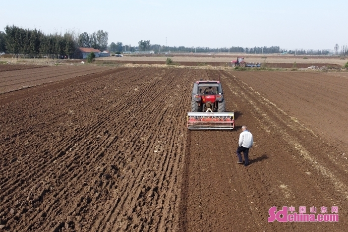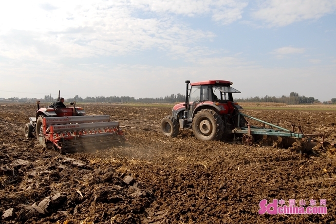 中国山东网—感知山东网10月18日讯 天气放晴,在山东青岛市即墨区田地里到处是一片繁忙景。平整耕地,播撒肥料,播种麦子,多辆拖拉机、播种机穿梭于田间……连日来,即墨区农民抢抓时节,在抢收玉米的同时播种小麦,确保不误农时。