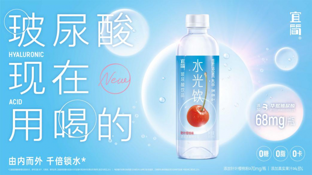 2021年1月7日,国家卫生健康委公告,批准透明质酸钠(即透明质酸,又称玻尿酸)为“新食品原料”。从此,玻尿酸除了可以涂抹护肤,还能被添加到乳品、饮料等食品中用来吃,透明质酸终端食品市场进一步放开,含玻尿酸食品顺势而生。宜简就是其中之一,6月快速推出了美容功能性饮品--水光饮·玻尿酸饮品,除了上架在常见的罗森、711等便利系统,天猫、京东官方旗舰店等电商平台也有销售。
